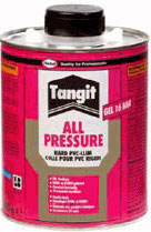 Tangit All Pressure Hart-PVC-Kleber für das Kleben von Rohrsystemen in der Längsrichtung, Muffen und Fittings aus PVC-U, wo hoher Druck (max. 16 bar) oder chemische Belastung herrscht. Der Kleber ist gelförmig und überbrückt Toleranzen bis max. 0,6 mm. Haltbarkeit 24 Monate. Tangit Kleber ist toluenfrei. |